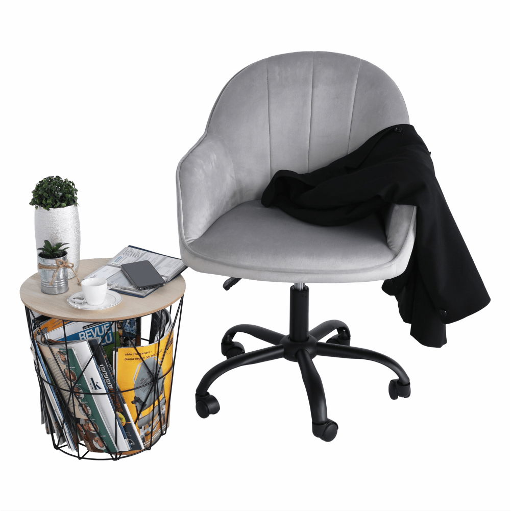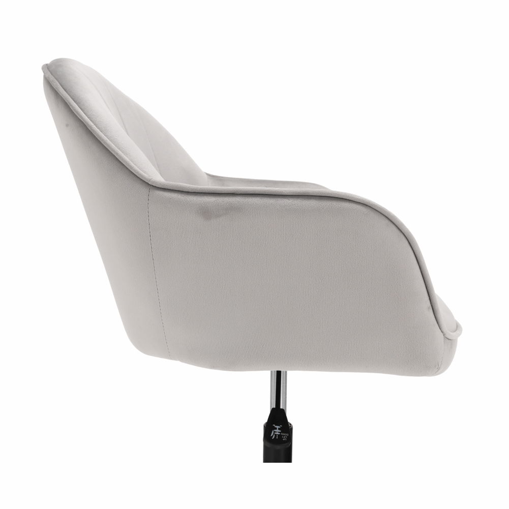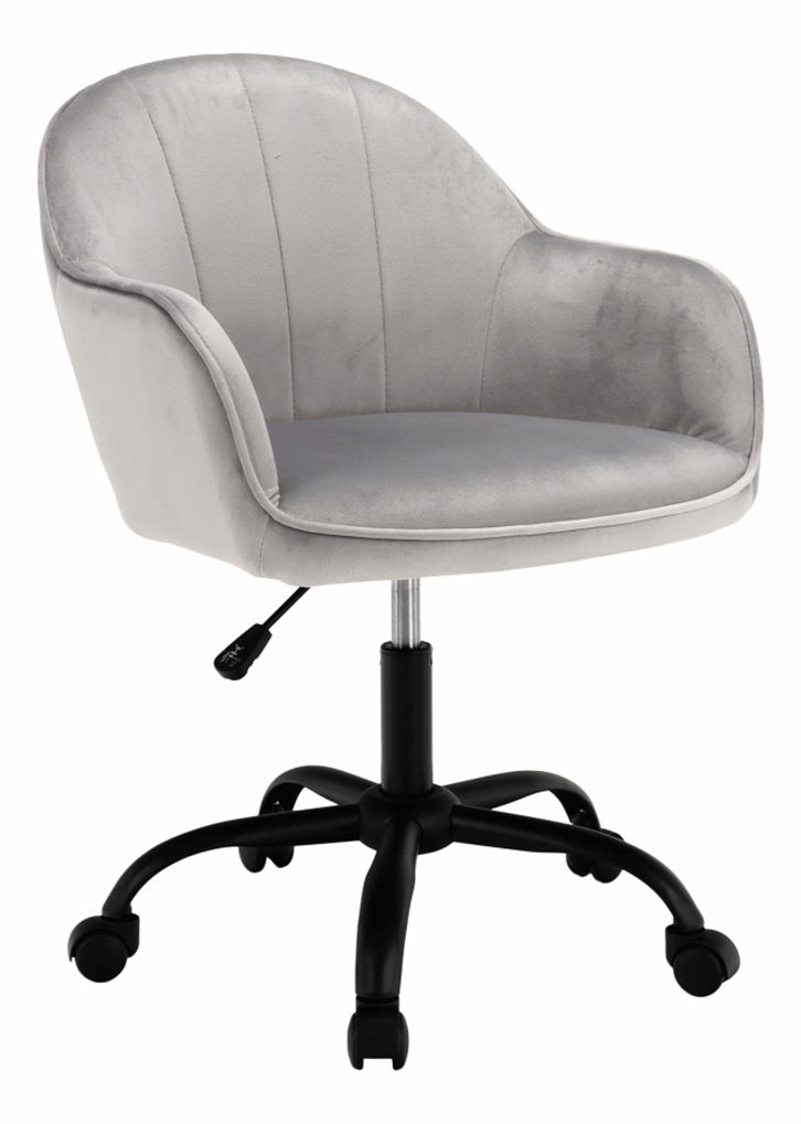 Kancelářské křeslo Euron (světle šedá) je vyrobeno z kovu a čalouněno velvětovou látkou ve světle šedé barvě. Křeslo má nastavitelnou výšku sedu od 45 do 54 cm, hloubku sedu 46,5 cm a šířku sedu 46 cm cm. Křeslo je otáčivé, má pěticípu růžici a kolečka pro snadnou přepravu. Křeslo je vhodné pro uživatele s hmotností do 110 kg a je dodáváno v demontu.