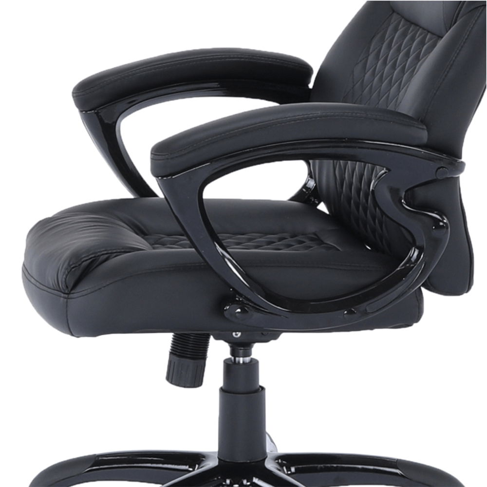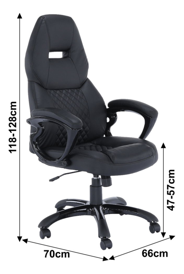 Kancelářské křeslo Herven je elegantní a moderní křeslo, které uspokojí i náročné uživatele. Disponuje tvarovaným opěradlem, područkami a sedadlem. Výška sezení je nastavitelná pomocí páčky. Křeslo má nosnost až 150 kg a je vyrobeno z ekokůže a plastu. Textilie křesla je odolná vůči opotřebení a vydrží až 100 000 oděrů. Rozměry křesla jsou 66x70x118-128 cm a je k dispozici v černém barevném provedení.