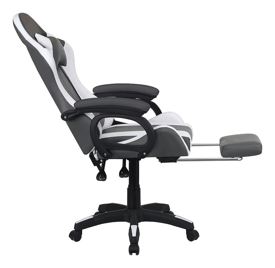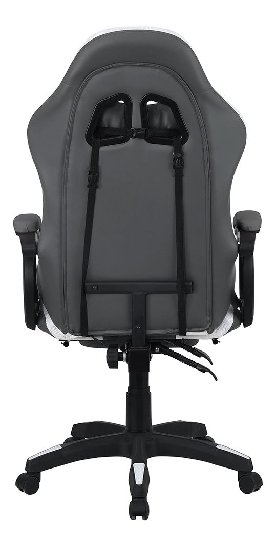 Dlouhé hodiny za počítačem? Často vás bolí záda, případně se vám sedí nekomfortně? Řešením je naše kancelářské, resp. herní křeslo Juventa. Pohodlně se usaďte, opřete si hlavu o polštář na křesle a nechte se masírovat druhým polštářem, který se nachází v bederní části židle. Bederní polštář má jeden masážní bod. Opěrka hlavy je výškově nastavitelná, a tak jako bederní opěrka, je odnímatelná. Ruce si opřete o plastové opěrky a polohu zad si nastavte prostřednictvím polohovací opěrky zad, která má sklon 90-135°. Židle má také výsuvnou podnož pro vaše nohy. Všechny přednosti Juventy uzavírá LED RGB osvětlení, které dotvoří atmosféru při učení, hraní nebo při práci.