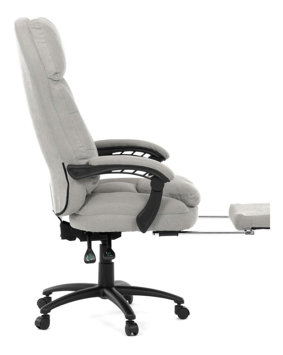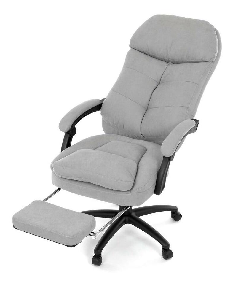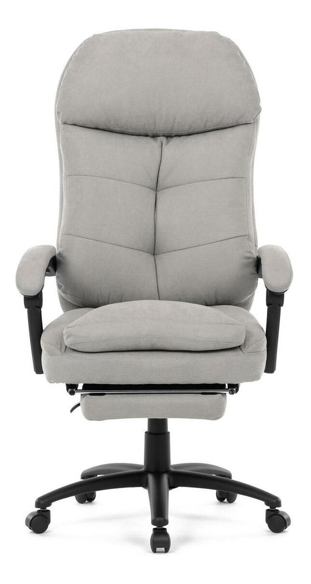Stylové a pohodlné kancelářské křeslo v šedém provedení je ideálním společníkem pro dlouhé pracovní dny. Díky kvalitní látce, měkké výplni z PU pěny a čalouněným područkám poskytuje maximální komfort při sezení. Praktická výsuvná opěrka nohou zvyšuje pohodlí a umožňuje relaxaci během práce. Synchronní mechanika zajišťuje nastavení polohy opěradla zad s možností aretace ve Vámi preferovaných polohách. Stabilní černý kříž s kolečky je nejen funkční, ale také esteticky zapadne do každého pracovního prostředí.