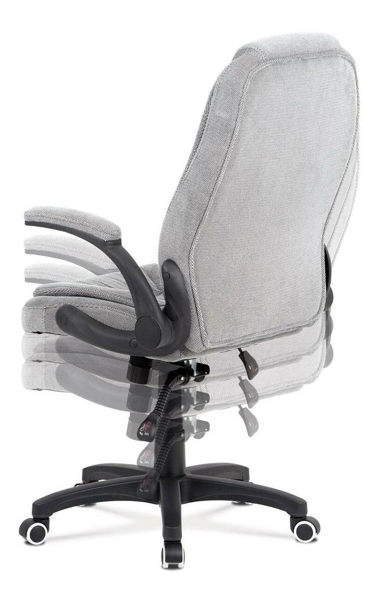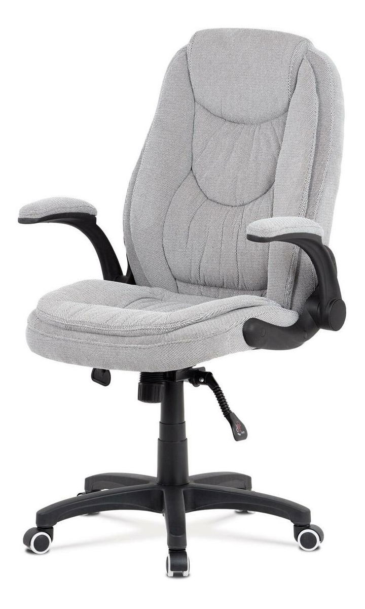 Moderní kancelářská židle potažená pololesklou šedostříbrnou látkou vzor pepito. Díky ultra pohodlnému sedáku a opěradlu s výjimečným polstrováním, které jsou stylově tvarované, s elegantním prošitím a super měkkým podhlavníkem se budete cítit jako v business class nejlepší letecké společnosti. Ruce si můžete pohodlně opřít o odklápěcí plastové područky stříbrné barvy s polstrováním potaženým extra jemnou látkou. Židle má také snadno omyvatelný, tvrzený, plastový kříž stříbrné barvy s černými protiskluzovými prvky a plastovými kolečky vhodnými pro tvrdé typy podlah (dlažba, parkety, plovoucí podlahy apod.). Židle je výškově nastavitelná, se synchronním mechanismem a předním šroubem upravujícím tuhost pohupu a její nosnost je až 120 kg. Látku čistit výhradně šamponováním běžnými čistícími prostředky za použití měkkého materiálu (houbička, hadřík). Nečistit hrubými materiály (kartáč, apod.). Nikdy nepoužívat chemická rozpouštědla. Látku nevystavujte přímému slunečnímu záření. Všechny nečistoty je třeba odstraňovat ihned po zašpinění. Pozdním čištěním se úspěšnost zákroku výrazně snižuje. Látku nevystavujte přímému slunečnímu záření.
