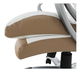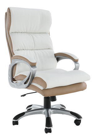 Elegantní kancelářské křeslo na černých kolečkách s potahem sedáku a opěrky na záda v ekokůže, plastovými šedými područkami s ekokůží, plastovým stříbrným podstavcem (křížem) a v provedení bílo - hnědá barva. Nosnost 110 kg.