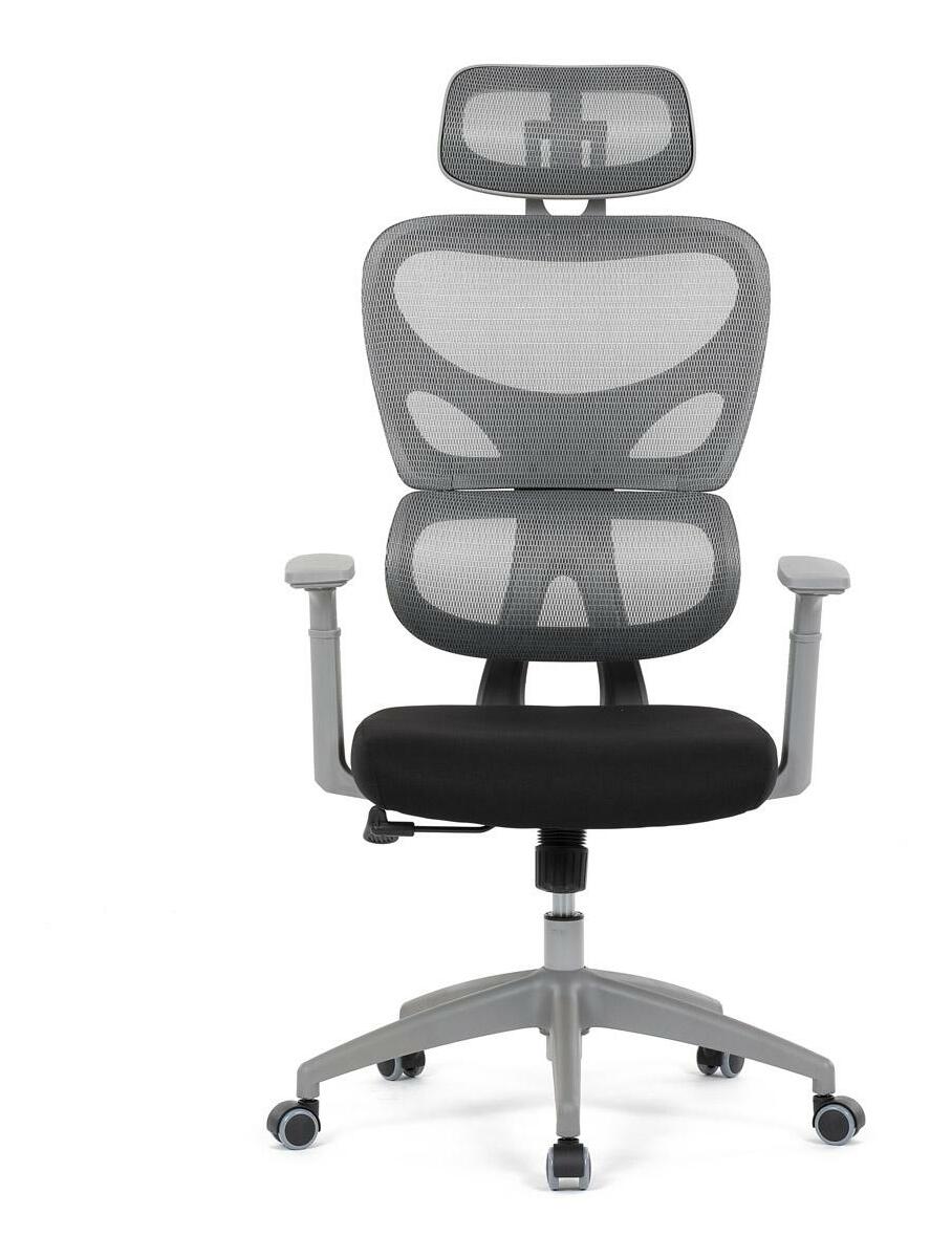 Elegantní moderní kancelářská židle zajišťuje špičkové pohodlí a styl. Ergonomicky tvarovaná bederní opěrka a nastavitelná opěrka hlavy poskytují dokonalou oporu během dlouhých hodin práce. Šedé síťované potahy přidávají na prodyšnosti a jsou odolné proti opotřebení, aniž by se ubíralo na luxusu. Absence čalouněných područek zajišťuje čistý a minimalistický design, který zapadne do jakéhokoli moderního interiéru. Tato kombinace komfortu a stylu je ideální volbou pro profesionály i domácí kanceláře.