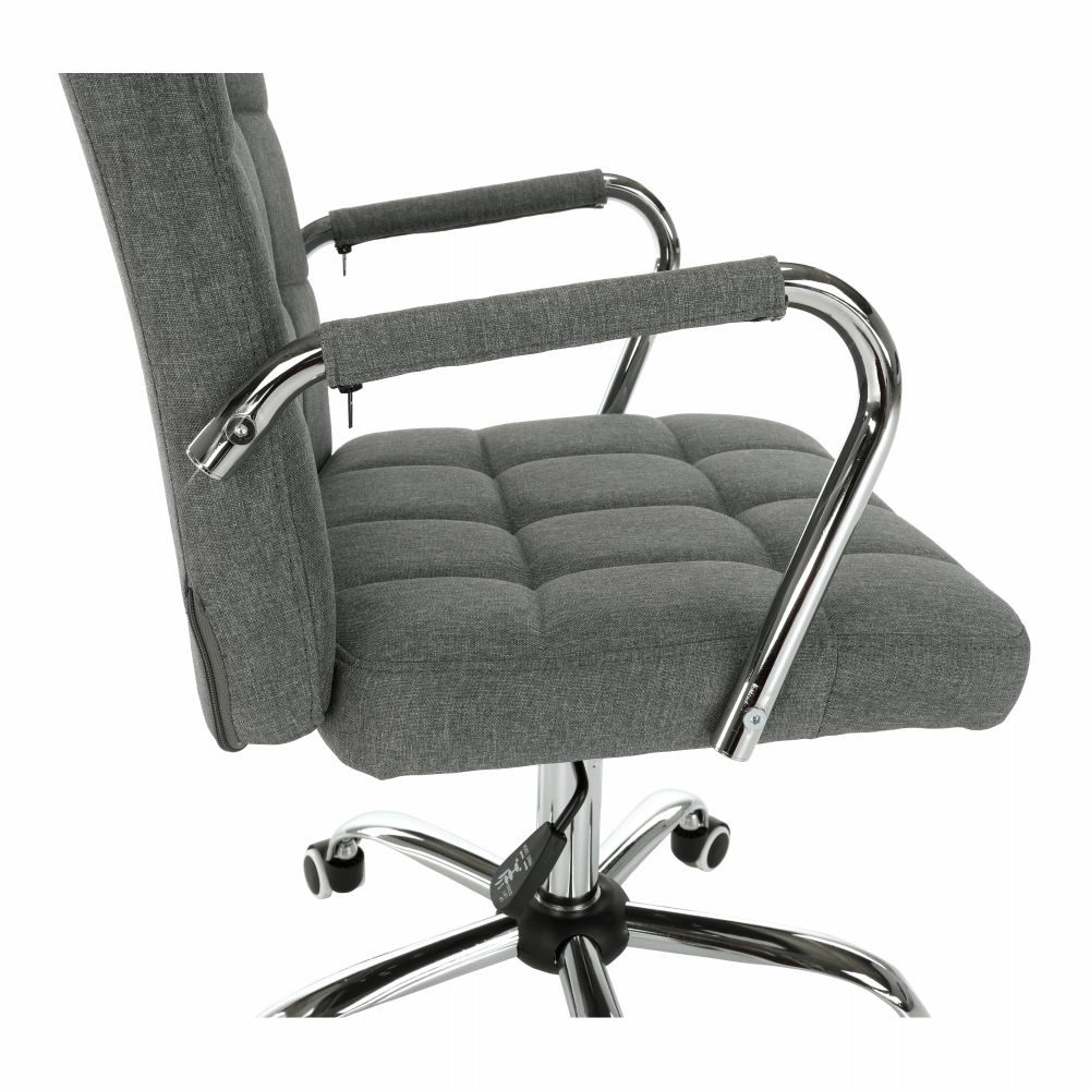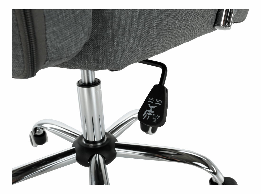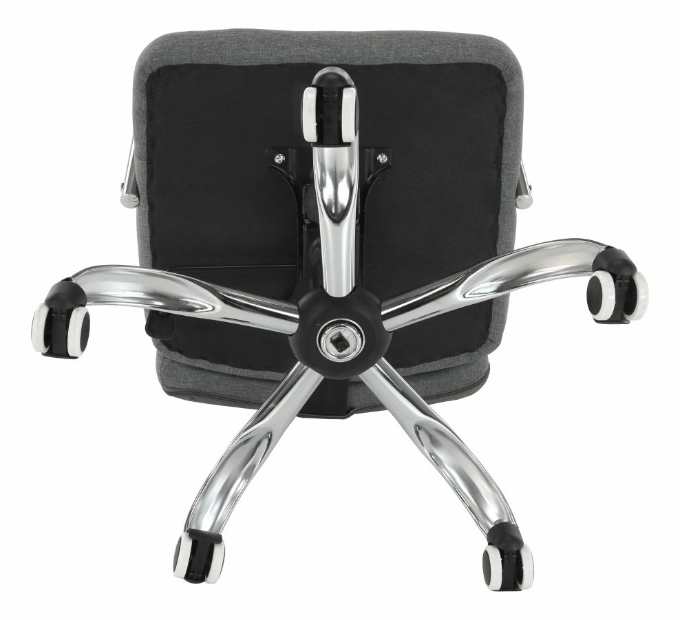 Moderní kancelářské křeslo Moragan si vás získá svou příjemnou světlešedou barvou. Její dokonalé linie představují vrchol dokonalosti. Perfektně ji doplňuje chromová podstava, na které jsou kvalitní pogumované kolečka vhodné na plovoucí i dřevěné podlahy. Komfort tohoto křesla doplňují chromové opěrky na ruce uprostřed.