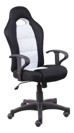 Pohodlné a ergonomicky tvarované kancelářské křeslo Vám zaručí zdravé sezení během celého dne. Materiál sedací části je prodyšná síťka v barevné kombinaci černá-bílá. Černé plastové područky a podstava už jen doplňují celkový design křesla. Pogumovaná kolečka jsou vhodné na plovoucí a dřevěné podlahy. Pomocí páčky, která je umístěna pod sedákem, se dá nastavit výška židle v rozmezí 113-123 cm. Nosnost je do 110 kg.