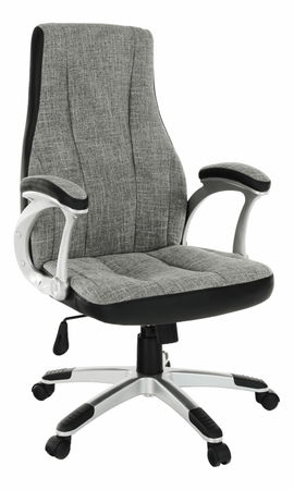 Svým jedinečným vzhledem, funkcí houpání a možností nastavení výšky sedu si vás zaručeně získá. Křeslo je vyrobeno z elegantní šedé látky a černé ekokůže. Kvalitní čalouněné područky vám poslouží na dokonalý relax, pro vaše unavené ruce. Opěrky na ruce i spodní růžice jsou plastové ve stříbrné barvě. Nosnost tohoto kancelářského křesla je až 110 kg.