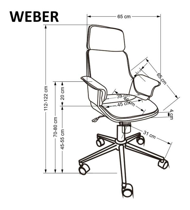 Kancelářské křeslo Weber (černá) je vyrobeno z kvalitních materiálů včetně TILT mechaniky, ohýbané překližky a eko kůže. Křeslo má výšku 112 cm a hloubku 65 cm. Je vybaveno rukojetí a nabízí pohodlné sezení během celého pracovního dne. Rozměry balíků jsou uvedeny níže. 1 (v.š.h.) - 80x20x60 cm, balík č.j. 2 (v.š.h.) - 65x20x60 cm, balík č.j. 3 (v.š.h.) - 80x20x60 cm, balík č.j. 4 (v.š.h.) - 65x20x60 cm, balík č.j. 5 (v.š.h.) - 70x20x60 cm. Toto křeslo je ideální pro každého, kdo tráví spoustu času sezením u počítače.