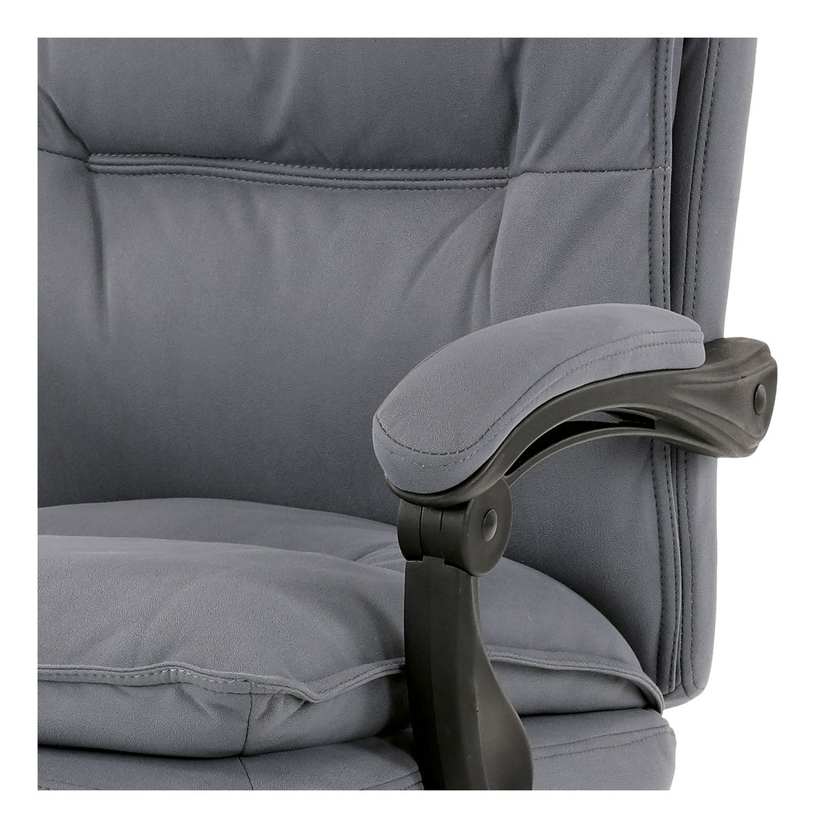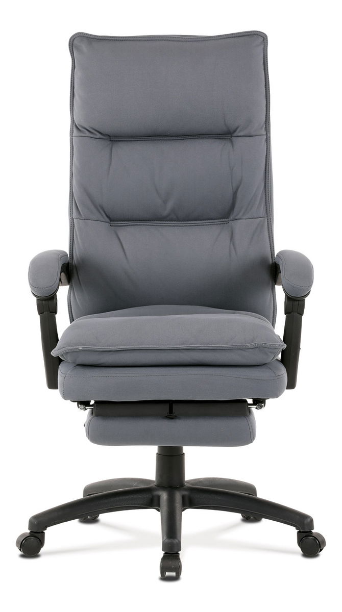 Luxusní kancelářské křeslo Yarvin-Y350 je moderní designové křeslo, navržené pro náročnou kancelářskou práci anebo je vhodné pro relax. A to v maximálním pohodlí a při dokonalé ergonomii sezení či ležení. Potah je vyroben ze šedé hladké látky. Výplň dvojitého sedáku i vysokého opěráku je z velmi kvalitní PU pěny. Toto křeslo je vybaveno permanent contact mechanismem s plynulou aretací. Při vypnutí je možné se s opěradlem volně pohupovat. Výšku sezení lze upravit jednou páčkou na pravé straně přes kvalitní plynový píst. Poloha opěráku se nastavuje druhou páčkou, umístěnou rovněž na pravé straně křesla. Černý plastový kříž má průměr 70 cm a je osazen černými plastovými kolečky, určenými na koberce. Vysoký, částečně prodyšný a ergonomicky navržený dvojitý opěrák s výrazným příčným dvojitým prošíváním s integrovanou opěrkou hlavy slouží nejen jako výborná opora celých zad a také podporuje správné držení páteře. Područky jsou plastové, polstrované a potažené šedou látkou. Šíře područek je 8 cm, délka opěrné plochy je 37 cm a výška 3 cm. Při sklápění sedáku se pohybují a kopírují jeho pohyb a polohu. Vaše ruce budou mít při odpočinku dokonalou a velmi měkkou podporu. Skvelým vybavením je výsuvná a výklopná polstrovaná podnožka. Toto kancelářské křeslo je zosobněním pohodlí a relaxu v jednom. V interiéru ho rozhodně nepřehlédnete, je to skvělý a navíc i designový solitér. Kvalita zpracování, důraz na pohodlí a ergonomii, to zaručuje pohodu při každodenní nebo i příležitostné kancelářské práci.