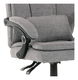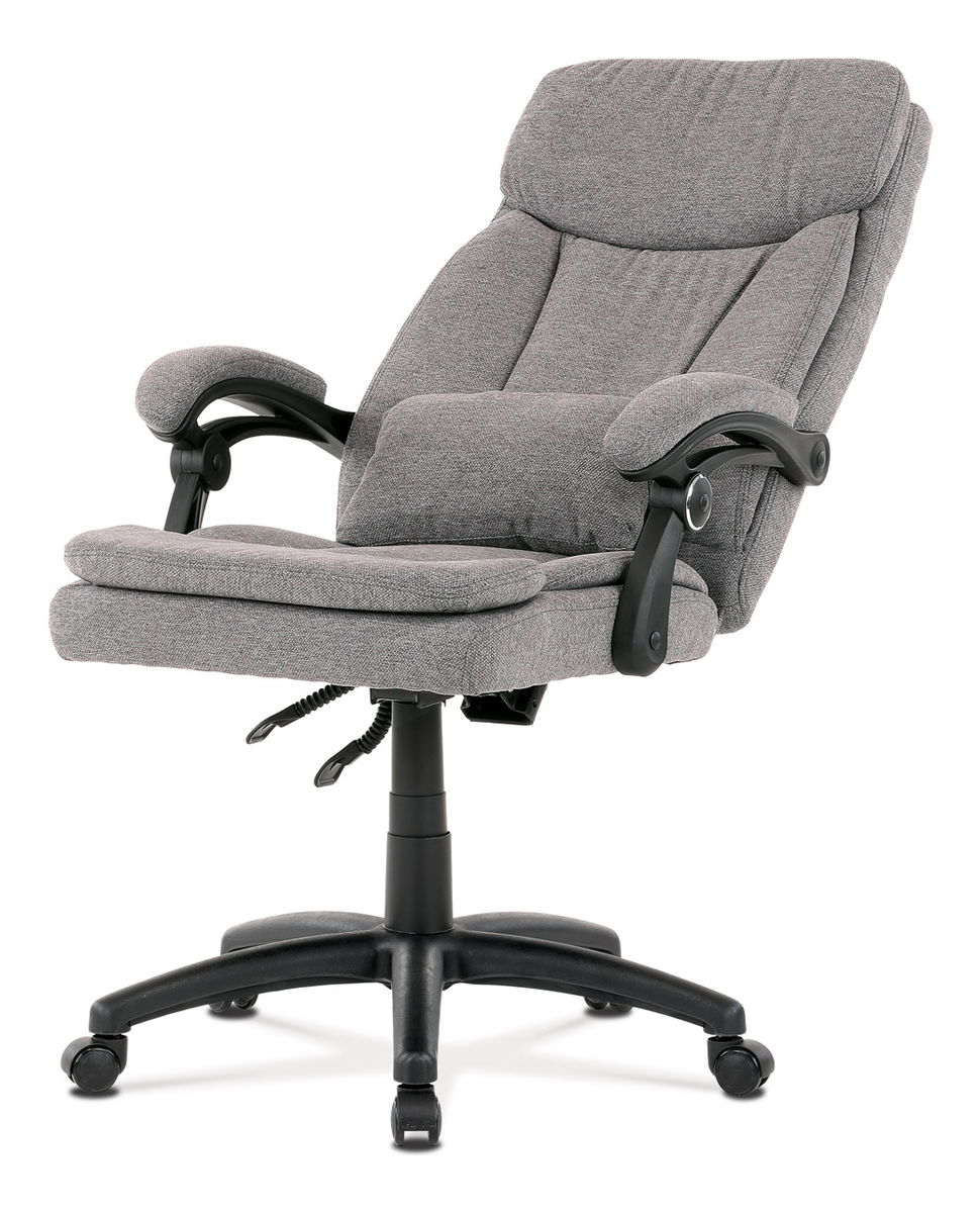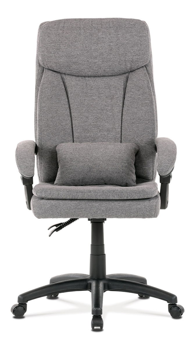 Luxusní kancelářské křeslo Yrmin-Y362 je moderní designové křeslo, navržené pro náročnou kancelářskou práci. Poskytuje maximální pohodlí a dokonalou ergonomii sezení. Potah je šedé středně hrubé látky. Výplň dvojitého sedáku i vysokého opěráku je tvořena velmi kvalitní PU pěnou. Křeslo má permanent contact mechanismus s plynulou aretací. Při vypnutí je možné se s opěradlem volně pohupovat. Výšku sezení lze upravit jednou páčkou na pravé straně přes kvalitní plynový píst. Poloha opěráku se nastavuje druhou páčkou, umístěnou rovněž na pravé straně křesla. Černý plastový kříž má průměr 70 cm a je osazen černými plastovými kolečky, určenými na koberce. Vysoký, částečně prodyšný a ergonomicky navržený dvojitý opěrák má integrovanou opěrku hlavy. Poslouží nejen jako výborná opora celých zad, ale také podporuje správné držení páteře. K tomu přispívá i malý bederní polštářek. Područky jsou z plastu, jsou polstrované a potažené šedou látkou. Šířka je 8 cm, délka opěrné plochy je 38 cm a výška 3 cm. Při sklápění sedáku se pohybují a kopírují jeho pohyb a polohu. Vaše ruce budou mít při odpočinku dokonalou a měkkou podporu. Toto kancelářské křeslo vám zabezpečí dostatek pohodlí a v interiéru ho rozhodně nepřehlédnete. Kvalita zpracování, důraz na pohodlí a ergonomii, to zaručuje pohodu při každodenní nebo i příležitostné kancelářské práci.