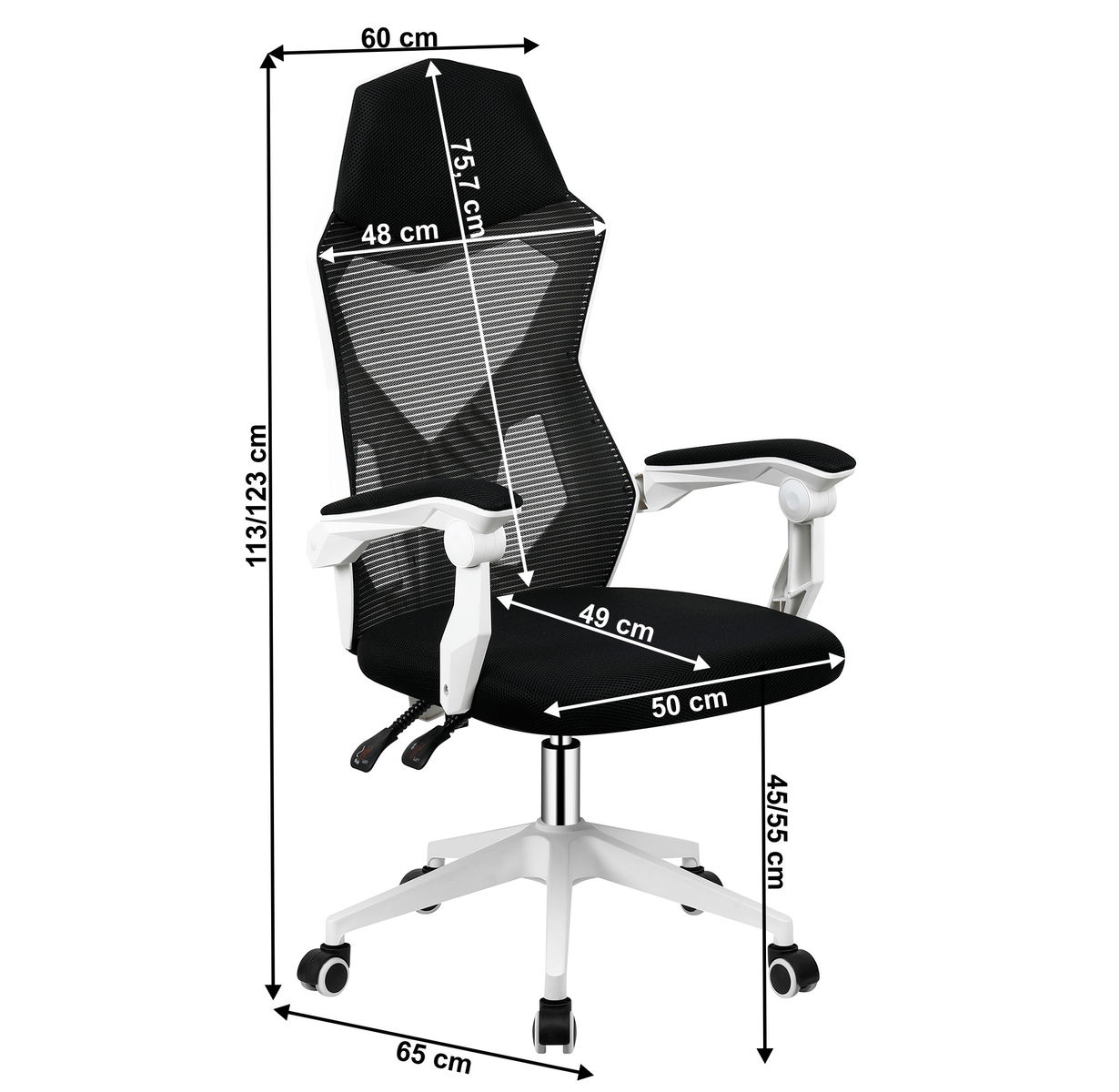 Herní kancelářské křeslo Yuky v černém provedení o výšce 113 cm a hloubce 65 cm je ideální volbou pro každého, kdo hledá pohodlné a ergonomické sezení. Toto křeslo má odnímatelné polštáře v oblasti hlavy a zad, čalouněné područky a nastavitelnou výšku sedáku. Materiálem je síťovina, výška sedu je 45 cm, šířka sedu 50 cm a hloubka sedu 49 cm. Křeslo má vysokou zádovou opěrku o výšce 75,7 cm a šířce 48 cm. Maximální nosnost křesla je 110 kg a opěradlo je nastavitelné ve sklonech od 90° do 135°. Křeslo se dodává v demontu.