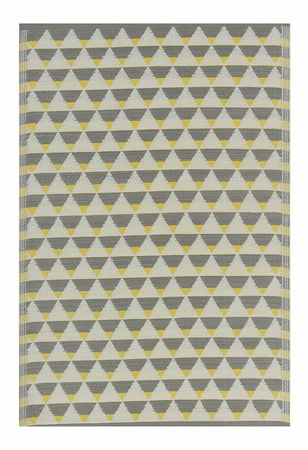 Vylepšete vzhled svého interiéru nebo vnějšího prostoru s tímto obdélníkovým kobercem. Je vyroben z odolných syntetických materiálů a lze jej použít na balkoně nebo v zahradě, a to bez obav, že se zničí. Snadno se udržuje a nevyžaduje téměř žádnou údržbu. Výrazný šedo-žlutý trojúhelníkový vzor dodává koberci moderní vzhled.