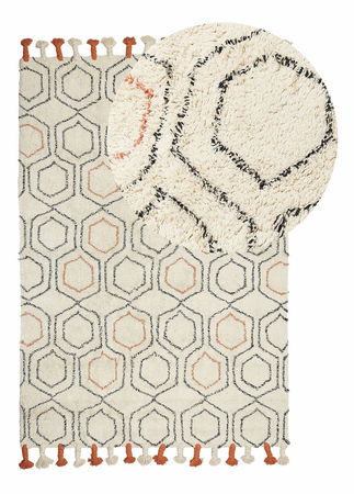 S kvalitními bytovými doplňky bude váš interiér působit hřejivě a útulně. Tento ručně všívaný koberec s nízkým vlasem je vyroben z bavlny. Jeho jednoduchý a zároveň dekorativní geometrický vzor v kombinaci s oranžovými ozdobnými třásněmi oživí vzhled jakéhokoli interiéru.