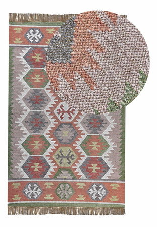 Tento koberec se stane jedinečným prvkem ve vašem obývacím pokoji nebo ložnici. Má krásný barevný vzor s etno motivem, díky kterému dodá osobitý charakter vašemu interiéru. Je vyroben z velmi kvalitního syntetického materiálu, takže jej lze použít v interiéru nebo exteriéru. Ať už se rozhodnete umístit jej kamkoli, určitě se stane zajímavým a poutavým doplňkem prostoru.