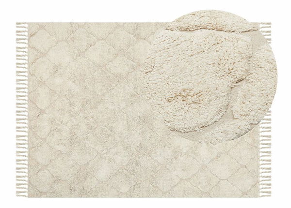 Tento béžový koberec s třásněmi dokáže zútulnit opravdu jakýkoli prostor. Díky měkké a nadýchané textuře a geometrickému vzoru je příjemný na dotek a zároveň hřejivý. Je dokonalým doplňkem nejen do ložnice, ale také do domácí kanceláře, předsíně či jakékoli jiné místnosti ve vašem interiéru.