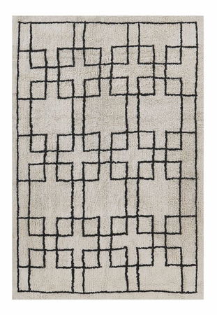 Hřejivý koberec je prvkem, který vnese do prostoru útulnost a dotvoří celkový vzhled místnosti. Vysokou odolnost a příjemný pocit pod nohama zaručuje použití přírodní bavlněné tkaniny. Geometrický vzor na koberci skvěle vynikne ve skandinávských nebo moderně zařízených interiérech.