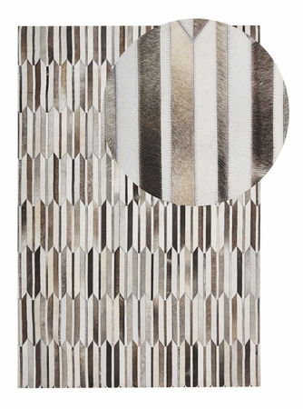 Tento koberec je vyroben z kousků kůže s přírodním vlasem v různých velikostech a odstínech béžové a hnědé a vytváří jedinečnou mozaiku, která zvýrazní dřevěnou i dlážděnou podlahu. Díky plstěné spodní straně tlumí hluk a svůj vzhled si udrží i po letech. Ručně vyrobený koberec je jedinečným dekorativním prvkem do jakéhokoli rustikálního nebo retro stylem inspirovaného obývacího prostoru.