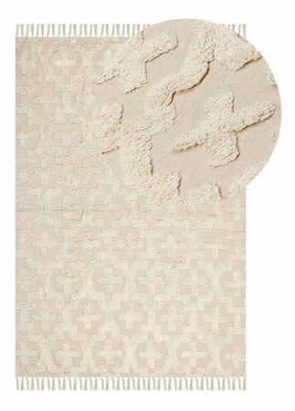 Díky krásnému geometrickému vzoru, ozdobným střapcům a univerzální béžové barvě je tento koberec ideální volbou pro zútulnění jakékoli místnosti ve vašem interiéru. Měkká a hřejivá textura vytvoří teplý a na dotek příjemný povrch pod nohama. Lze jím doplnit ložnici, obývací pokoj, domácí kancelář či vstupní chodbu.