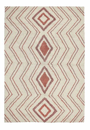 Doplňte vzhled svého obývacího pokoje nebo ložnice tímto vzorovaným kobercem, který rozzáří jakýkoli prostor. Tento koberec s vysokým vlasem je doplněn geometrickým vzorem v odstínech růžové, který vyniká na béžovém pozadí. Je dokonalým minimalistickým doplňkem a díky preciznímu zpracování lahodí oku a vydrží léta používání.