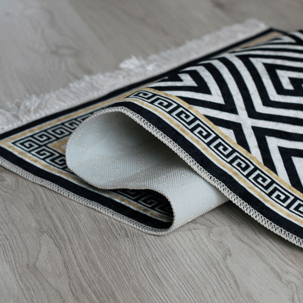 ZobrazitKoberec MOTIVE s třásněmi dokonale ladí s každým vybavením pokoje a podpoří tak celkový styl vašeho domova. Spojuje v sobě dva světy, moderní a tradiční, proto se hodí do městských, ale i venkovských interiérů. Vyroben je ze 100% polyesteru v nestárnoucí kombinaci černý a bílý vzor. Dokonalý koberec pro vaši domácnost.