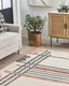 Tento dekorativní koberec je vhodný do obýváků a ložnic zařízených ve skandinávském stylu. Díky okrajům s třásněmi a všívaným abstraktním vzorem vyniká svým vzhledem a jeho jemně barevný podklad rozzáří celou místnost. Ručně tkaný koberec z přírodní bavlny je jemný na dotek a jen tak snadno se neopotřebuje.