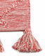 Koberec s geometrickým vzorem a ozdobnými třásněmi vytváří klasický design inspirovaný boho stylem Kombinace červené a bílé barvy určitě zaujme každého, kdo preferuje doplňky v zářivých barvách.