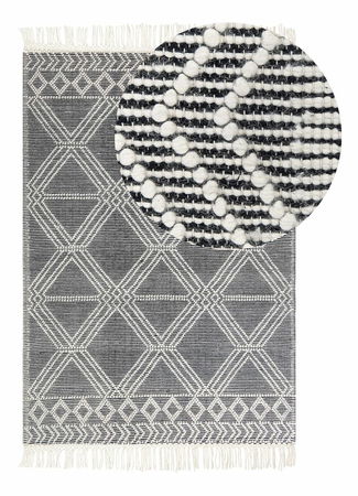 Správný výběr koberce dokáže osvěžit váš domov a vnést do něj zcela novou atmosféru – stejně jako tento kousek, který do vašeho domova vnese jedinečnou, moderní atmosféru. Ručně vyrobený z odolné vlny, tento koberec je příjemný na dotek a vydrží mnoho let i bez každodenní údržby. Koberec má na sobě geometrický vzor v bílé barvě a oba jeho konce jsou ozdobeny třásněmi. Takový jedinečný kousek vynikne v interiérech zařízených v různých stylech.