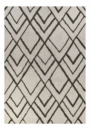 Tento koberec přitáhne pozornost všech hostů. Vyniká svým jedinečným geometrickým vzorem, který kontrastuje se světlým podkladem. Díky ideální kombinaci barev se hodí do různých interiérů, ale nejvíce vynikne v interiérech zařízených v boho stylu.