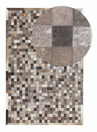Pokud chcete zařídit svůj obývací pokoj v elegantním stylu, vyberte si kožený patchworkový koberec. Množství kousků kůže v různých odstínech šedé a hnědé vytváří opravdu elegantní design. Koberec se stane dokonalým doplňkem rustikálního obývacího pokoje nebo ložnice zařízené v industriálním stylu. Struktura koberce je příjemná na dotek a díky krátkému vlasu se snadno udržuje.
