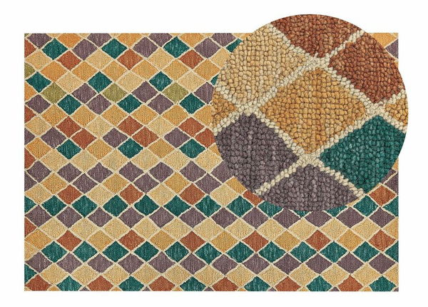 Vneste do svého interiéru pocit útulnosti a tepla s tímto kvalitním kobercem. Ručně všívaný koberec je vyroben z vlněného vlákna, které je mimořádně příjemné na dotek. Jeho barevný geometrický vzor zaručeně oživí jakýkoli interiér bez ohledu na styl interiérového zařízení.