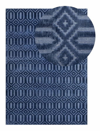 Tento koberec s krátkým vlasem je praktickým a stylovým doplňkem, který doplní interiéry zařízené v moderním a skandinávském stylu. Geometrický vzor v různých odstínech modré koberce dodává vizuální hloubku. Je ideální do obývacího pokoje, ale využití najde například iv ložnici.