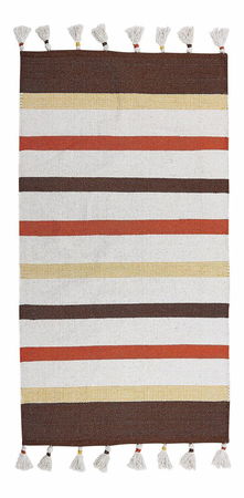 Tento barevný koberec v okamžiku rozzáří celý interiér a stane se zajímavým středem pozornosti. Díky barevným pruhům a ozdobným střapcům je vhodný do interiérů zařízených v různých stylech a hodí se i do dětského pokoje. Je ručně tkaný z kvalitní bavlny.