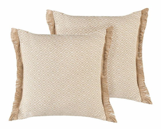 Tyto polštáře jsou dokonalým doplňkem interiéru v boho nebo moderním stylu. Měkká výplň polštáře je umístěna v béžovém potahu, který zvýrazňuje geometrický vzor. Třásně na okrajích polštářů umocňují boho design těchto kousků. Zkrášlete svůj obývací pokoj nebo ložnici pomocí této nadčasové sady polštářů.