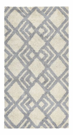 Zútulněte si obývací pokoj tímto světle béžovým kobercem. Vyznačuje se na pohled příjemným geometrickým vzorem v šedé barvě, díky kterému bude vynikat mezi ostatními doplňky. Ručně všívaný koberec je vyroben z bavlny, je výjimečně měkký a odolný. Umístěte jej před pohovku nebo vedle postele a dopřejte svým nohám pohodlí a svému interiéru nový vzhled.