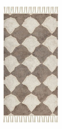 Chcete-li si zútulnit domov, zkuste jej doplnit tímto obdélníkovým kobercem. Je vyroben z bavlny, takže je velmi měkký a příjemný na dotek. Díky hnědo-béžové barevné kombinaci jej lze snadno sladit s jinými dekoracemi, a to bez ohledu na styl vašeho interiéru. Jelikož je ručně všívaný, můžete si být jisti jeho jedinečným designem.