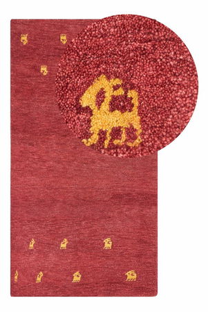 Zkrášlete svůj domov pomocí tohoto nádherného koberce. Koberec je vyroben z vysoce kvalitní vlny, je odolný, měkký a příjemný k chodidlům. Poutavý vzor s motivem zvířátek na červeném pozadí se skvěle hodí do ložnice či dětského pokoje, a díky ruční výrobě je koberec jedinečným uměleckým dílem.