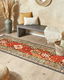 Tento koberec, inspirovaný kulturou a tradicí Blízkého východu, vnese do vašeho interiéru exotickou atmosféru. Jeho vícebarevný vzor se symboly jistě upoutá pozornost každého, kdo vstoupí do místnosti, zatímco syté odstíny oranžové a červené rozzáří celý interiér. Koberec je vyroben výlučně z vlny a je mimořádně měkký a odolný. Použijte jej jako dekoraci podlahy v obývacím pokoji nebo ložnici.