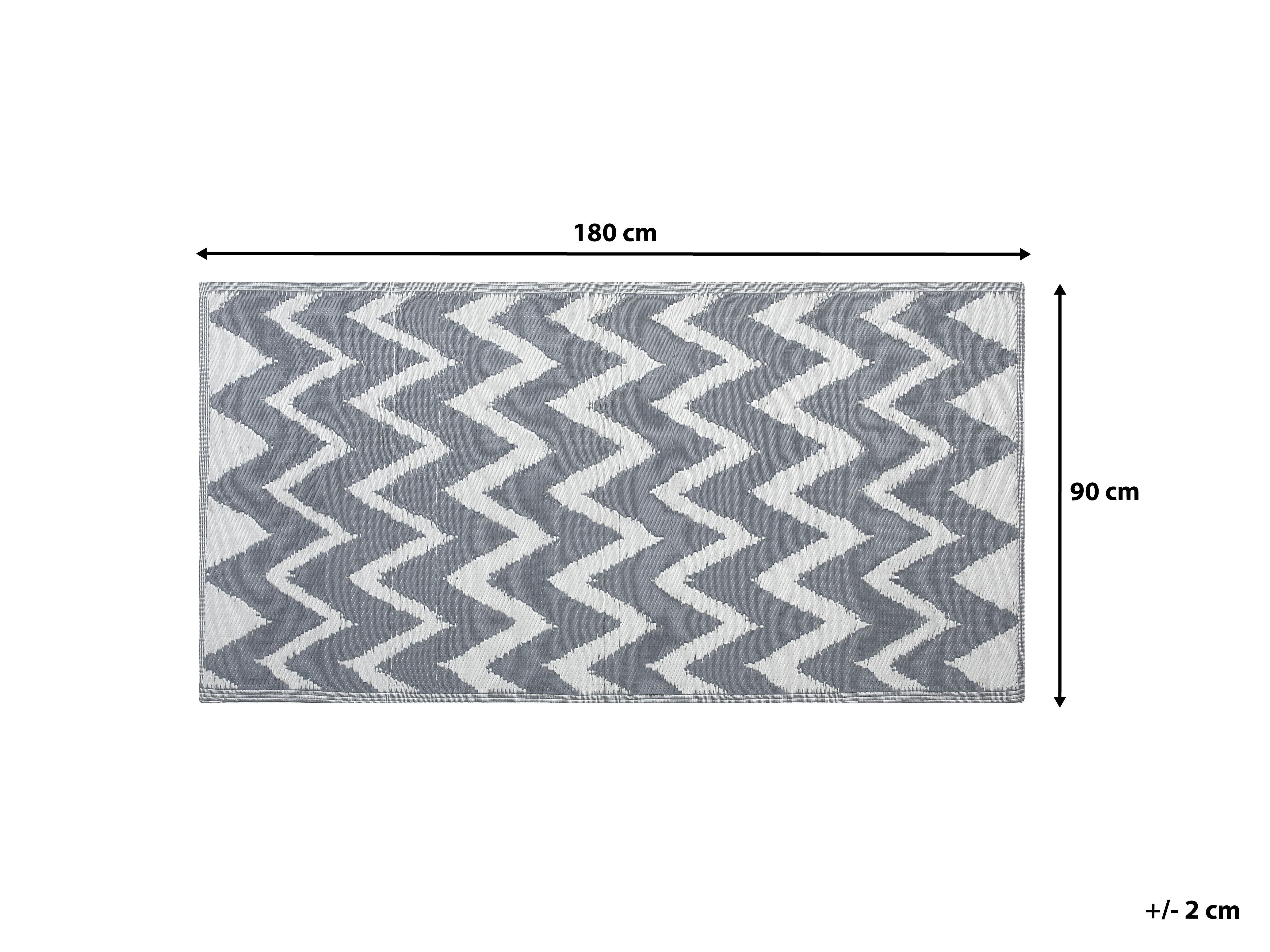 Dodejte svému obývacímu pokoji, zahradě, hale nebo terase styl s kobercem s moderním designem. Je vyroben z ekologického syntetického materiálu, díky kterému je vhodný i do exteriéru. Díky klasickému vzoru chevron ve dvou odstínech šedé se snadno kombinuje s různými styly a barvami zařízení.