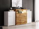 Kombinovaná komoda Freya III (bílá + dub wotan + lesk bílý) (osvětlení LED bílé)