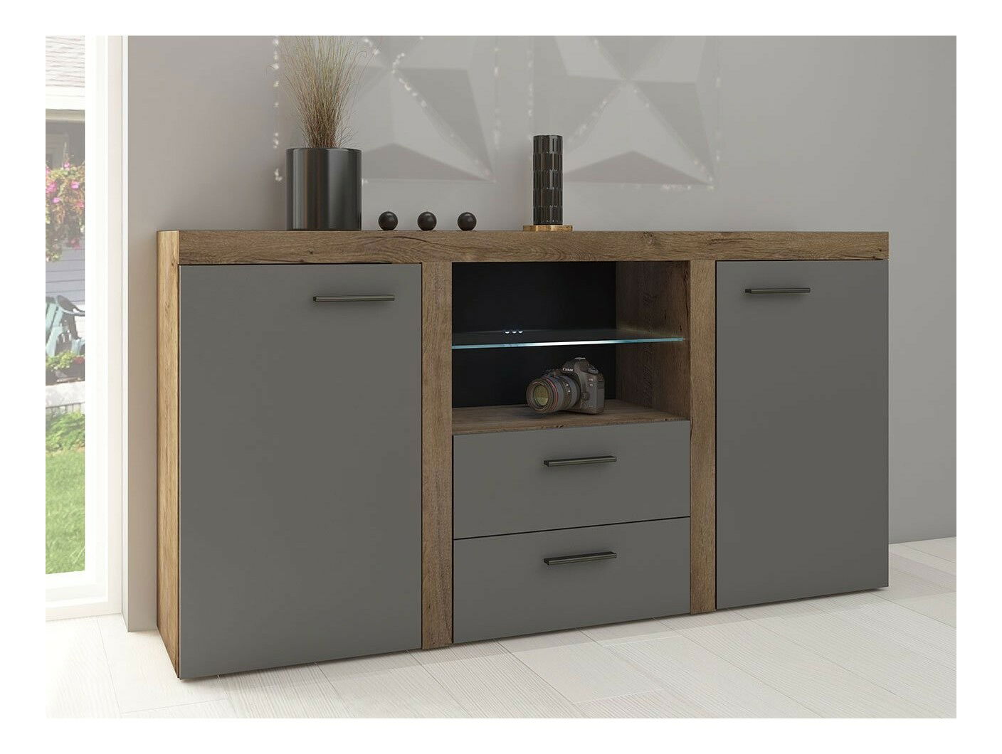 Kombinovaná komoda Rokara (dub lefkas + grafit) (bez osvětlení)