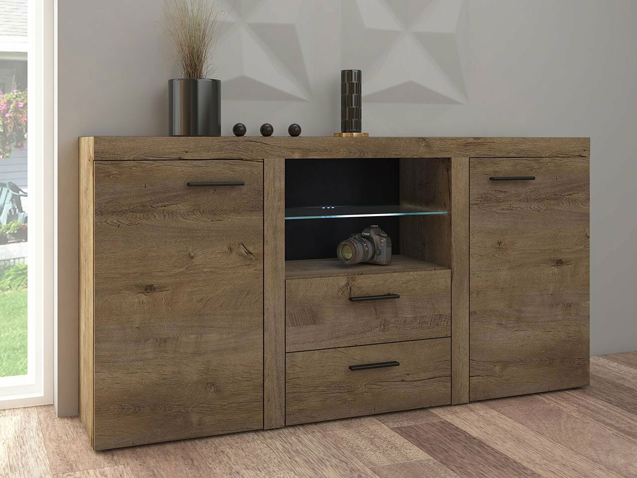 Kombinovaná komoda Rokara (dub lefkas) (osvětlení led)