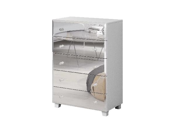 Zásuvková komoda Belinda je součástí ložnicové sestavy Belinda. Disponuje pěti zásuvkami a z celé přední části je pokryta zrcadlem. Celý kus nábytku připomíná jedno velké zrcadlo.
