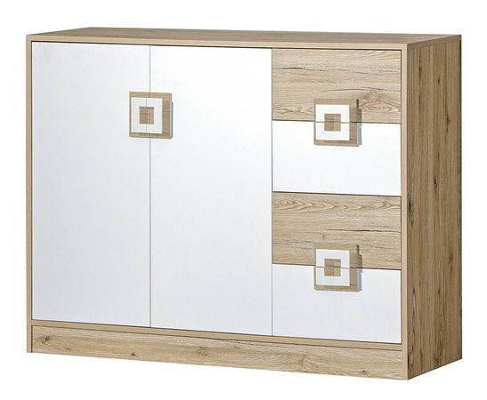 Komoda 120 NI08 Nika (Dub světlý + Bílý + Dub světlý)
