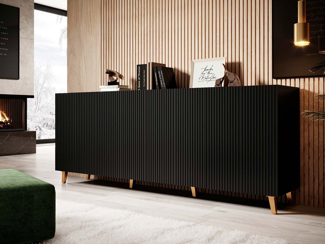 ZobrazitKomodaSaphina je elegantní kus nábytku, který zapadne do interiéru člověka s dobrým vkusem. Za inovativním stylem nábytku určitě stojí přední část komody s podélnými pruhy s prostorovou strukturou. Korpus je vyroben z laminované desky s matným povrchem a nohy nábytku jsou vyrobeny z plastu v kontrastní barvě. Uvnitř má komoda prostorné police uzavřené dvířky, zásuvku a police pro vystavení dekorací nebo knih.