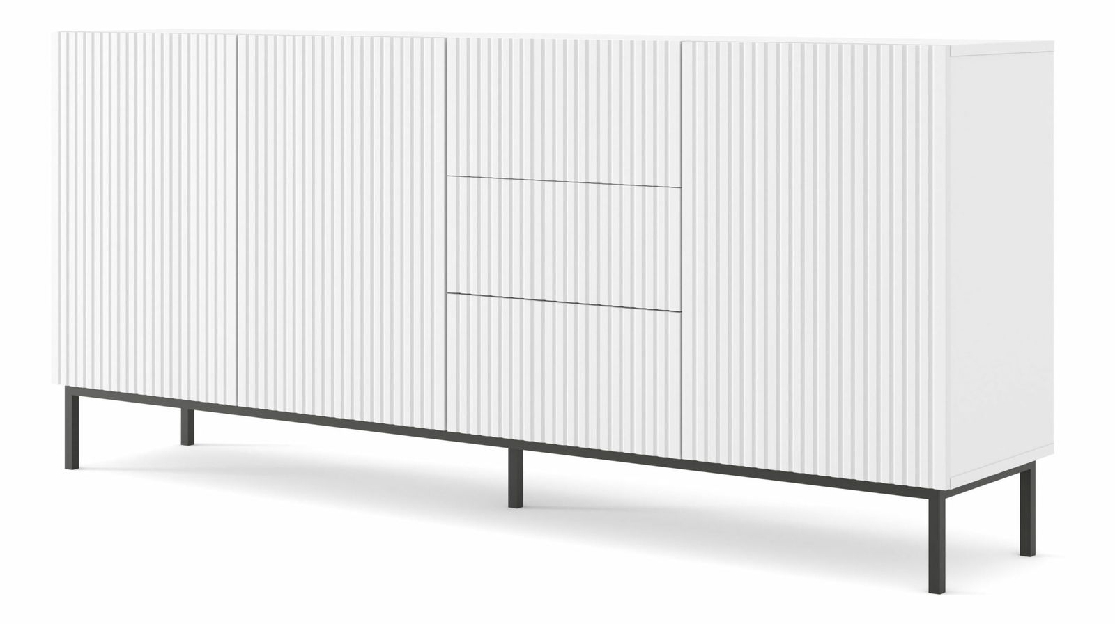 ZobrazitNábytek z prezentované kolekce Rowanna se vyznačuje elegancí a jedinečným vzhledem. Bude vhodný do moderních aranžmá, které změní interiér obývacího pokoje nebo jídelny. Jednoduchost tvarů dokonale ladí s frézovanými čely. Kovový rám podpírající korpus zajišťuje stabilitu a dodává styl a výraznost. Komoda je vybavena třemi skříňkami a třemi zásuvkami. Díky tomu je funkční a usnadňuje organizaci.