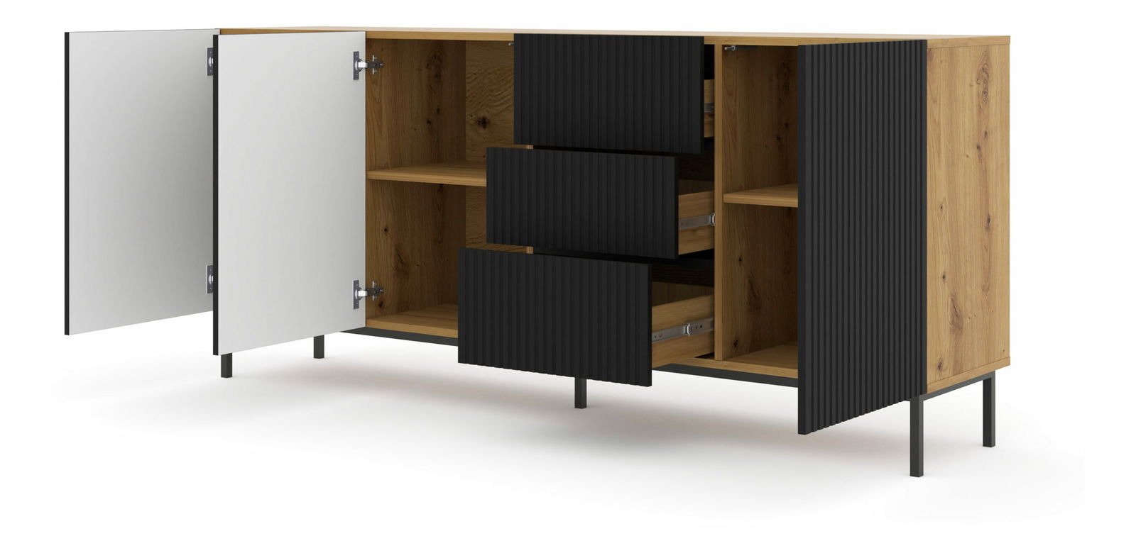 Komoda 3D3S 200 Rowanna (dub artisan + černá)