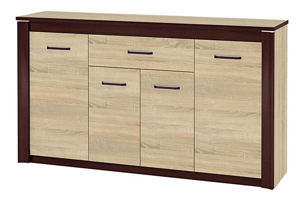 Nábytek Oliwier byl připraven s pomyšlením na ty, kteří si cení eleganci a přirozenost. Spojením klasických vzorů s moderními prvky byla vytvořena kolekce systémového nábytku v jednoduché a elegantní formě. Je vyroben z laminovaných desek nejvyšší kvality s viditelnou strukturou dřeva, která podtrhuje krásu Sonoma světlé a Sonoma tmavé. Aplikované vzory se budou ideálně prezentovat v moderních i klasických interiérech. Použití MDF prvků s metalizací nabízí eleganci a půvab. Různorodost tohoto systému nám dovoluje si libovolně uspořádat interiér obývacího pokoje, jídelny i ložnice. Nábytek je vyroben z laminované desky vysoké kvality. Je odolný proti poškrábání, vlhkosti a vysoké teplotě. Obsahuje estetickou úpravu ABS na hranách, která je odolná proti nárazu, vlhkosti, nedeformuje se a neodlepí. Vitríny obsahují certifikované tvrzené bezpečnostní sklo.