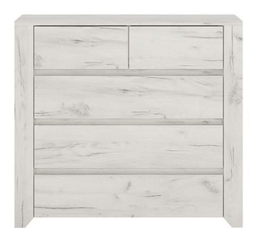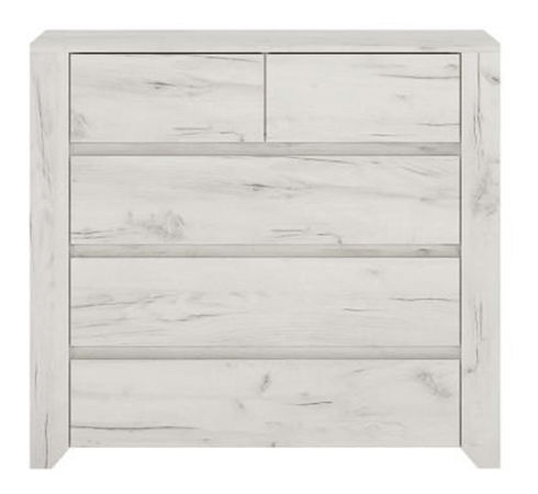 Komoda Adamus Typ 43 5S je moderní sektorový nábytek s bílým korpusem a dvířky v barvě craft. Součástí komody jsou 5 zásuvek, z nichž 2 jsou úzké a nacházejí se v horní části. Materiál, ze kterého je nábytek vyroben, je laminována DTD. Nábytek je ideální pro zařízení dětských a studentských pokojů. Svým bezúchytovým systémem působí velmi moderním a elegantním dojmem. Komoda je dodávána v demontu, její rozměr je 118,7x40,2x76,5 cm, výška spodního prostoru od podlahy je 2,5 cm a tloušťka materiálu je 16 mm.