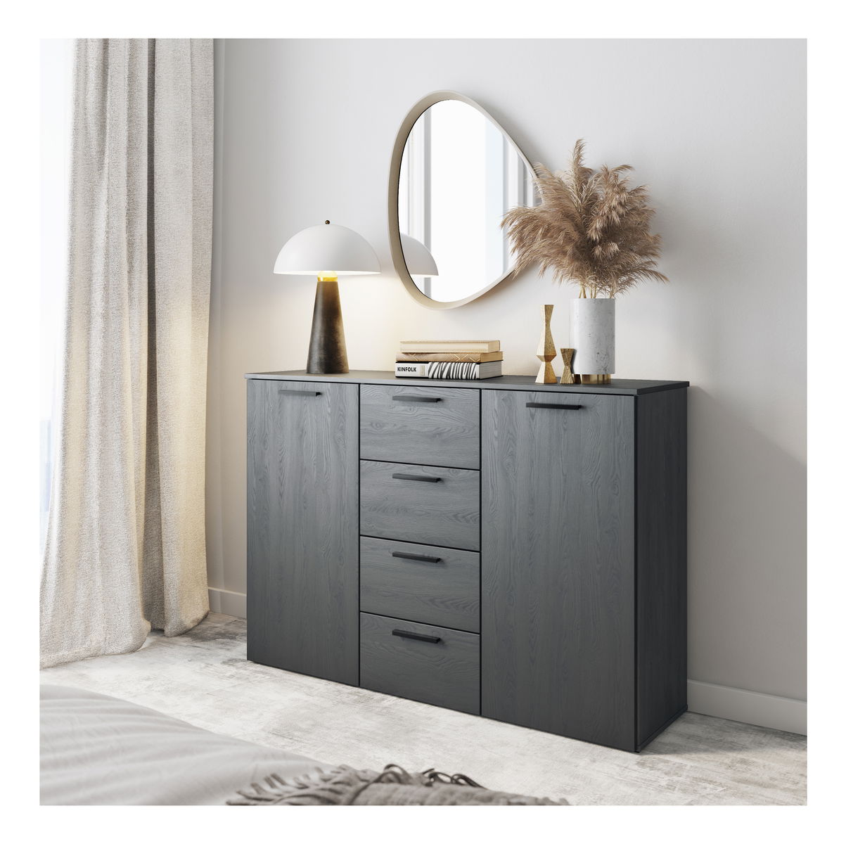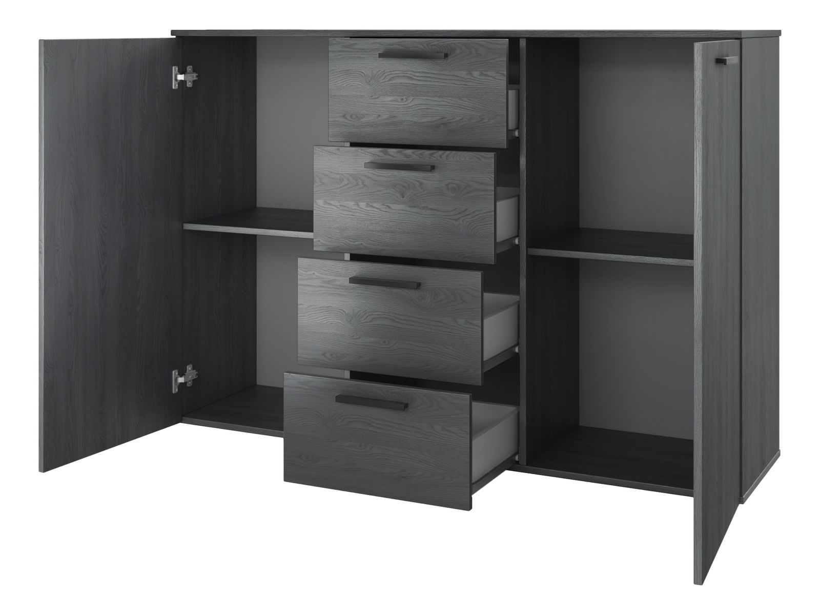 Komoda Afrodita Typ 26 je skvělým doplňkem pro váš interiér, který kombinuje design s praktičností. Vysoká 93 cm a hluboká 38 cm, komoda má rozdělenou konstrukci se třemi částmi. V pravé a levé části jsou dvoje dvířka, která poskytují dostatek úložného prostoru, zatímco prostřední část má čtyři zásuvky, které uspořádají vaše věci a zjednoduší jejich nalezení. Výrobek je vyroben z kvalitního Abisko jasanu, který zajišťuje jeho pevnost a trvanlivost. Komoda Afrodita Typ 26 (bílý popel) je ideální do ložnic, obývacích pokojů nebo moderní kanceláře.
