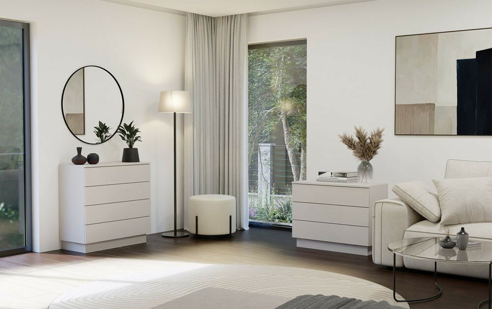 ZobrazitKomoda Ajuste 3 v elegantní barvě kašmír je ideálním řešením pro moderní interiéry, ať už do ložnice, obývacího pokoje nebo dětského pokoje. S jejími kompaktními rozměry a minimalistickým designem se skvěle hodí i do menších prostor. Tato praktická komoda nabízí čtyři prostorné zásuvky, které jsou vybaveny pohodlným systémem otevírání na klik, což usnadňuje organizaci oblečení, dokumentů a drobných předmětů. Její matné provedení a pečlivě zvolená barevná paleta zaručují, že se stane stylovým doplňkem každého domova.