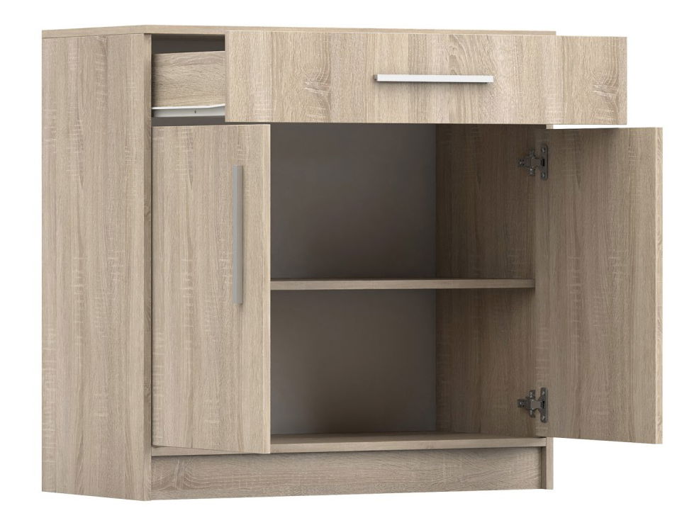 Komoda Aldera 1S2D o výšce 85 cm a hloubce 41 cm v dub sonoma barvě je vyrobena z kvalitní dřevotřísky o tloušťce 16 mm a disponuje ABS hranami pro lepší odolnost a ochranu před poškozením. Tato komoda nabízí dostatek úložného prostoru díky jednomu zásuvkovému a dvěma dveřním prostorům. Je vhodná do každého pokoje a její stylový design dokáže doplnit každý interiér.